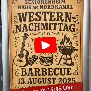 Im „Haus am Nordkanal“ zog der Wilde Westen ein: Bei Sonnenschein gab es frisch Gegrilltes, kleine Burger und Musik von Gerd Pelka. Neben beliebten Schlagern erklangen auch englische Ohrwürmer – ein Zeichen dafür, dass sich das Musikrepertoire auch bei uns langsam wandelt. Mit viel Herzblut vom Team der Sozialen Betreuung vorbereitet, wurde der Nachmittag zu …